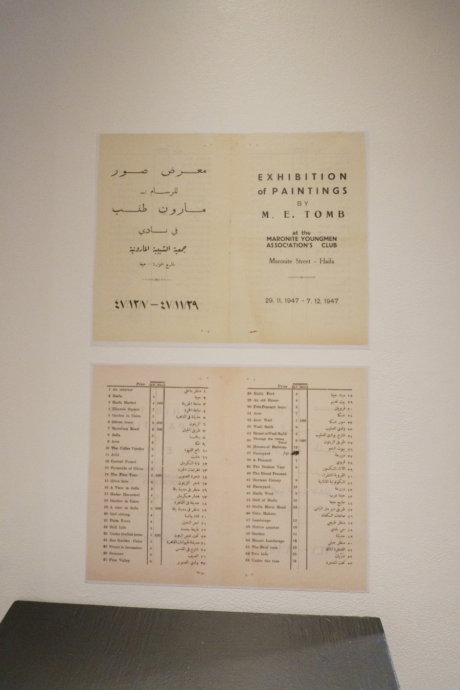 Another archive revealed a document featuring the titles of Tomb’s 53 oil paintings, many of which referenced specific places in Palestine, specifically Haifa. This inspired a deeper reinterpretation of these sites.