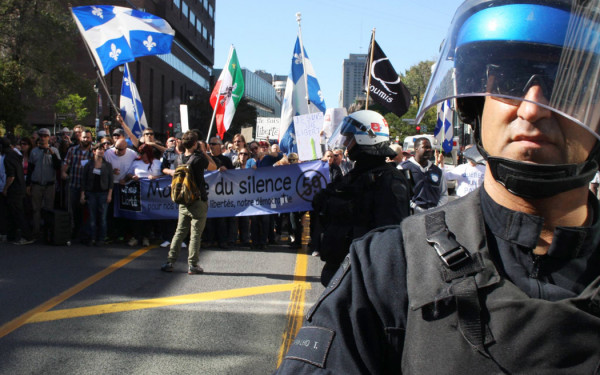 Some counter-protesters marching against La Meute used a number of violent tactics, and vandalised the city. Some of those acts were committed by masked individuals who allegedly came from Montreal.