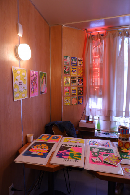 In much of the same spirit as Poincaré, local artists utilize the unused restaurant space, creating a lively atmosphere of exchange. The restaurant serves food for takeout, including Japanese Yakitori, Bento boxes, and Katsu Curries.