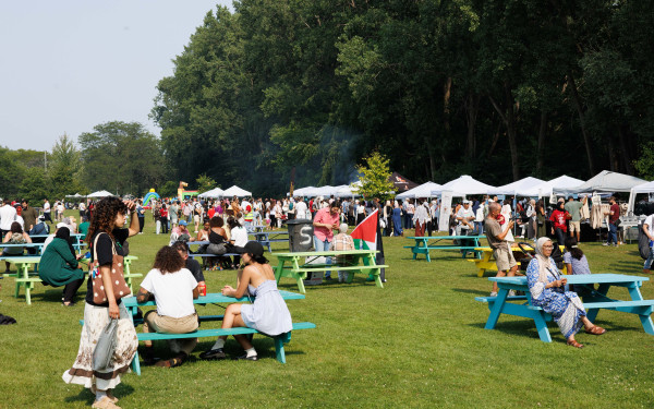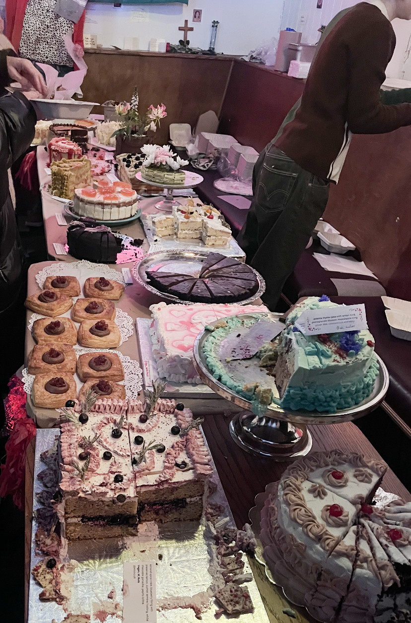 Inside the bar, the space was packed with people admiring the display of cakes, which ranged from classic flavors such as chocolate and red velvet, to elaborate, multi-layered creations. Attendees could purchase up to five slices, each priced at $6, with all proceeds going directly to Palestinian mutual aid efforts.