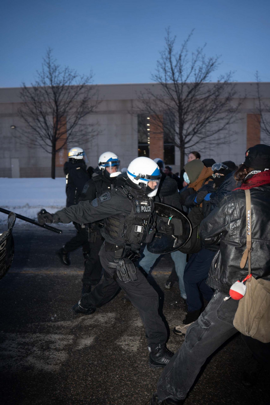 Upon arriving at GardaWorld’s campus around 5:05 p.m., protesters were almost immediately confronted with violent police repression.