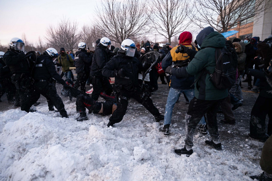 They further said that the officers forced demonstrators back to Place Vertu—about 2 kilometres away from GardaWorld’s headquarters—by continuously firing tear gas canisters into the crowd and repeatedly charging towards them.