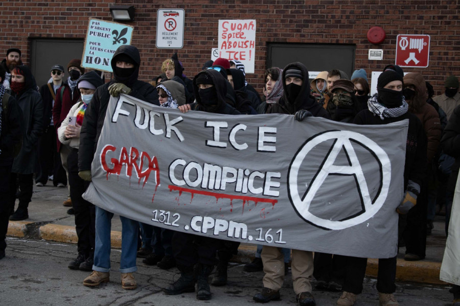 Around 300 Montrealers gathered in the Saint-Laurent borough on Feb. 13 to protest against Quebec-based security contractor GardaWorld, denouncing the firm’s connections to U.S. Immigration and Customs Enforcement (ICE).