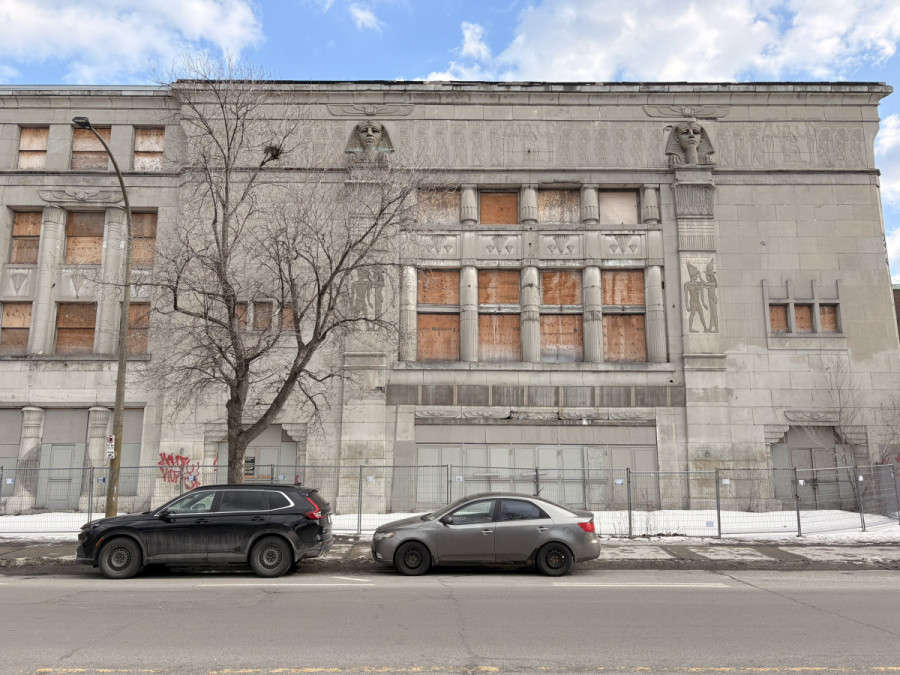 The Empress Theatre was built in 1927, with its façade designed by Joseph-Alcide Chaussé in the Egyptian Revival architectural style as an homage to the discovery of the pharaoh Tutankhamun’s tomb in 1922. It was the only theatre of its kind in Canada. The interior was designed in a surrealist style by architect Emmanuel Briffa.