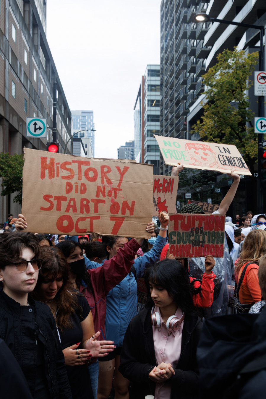 Around 30 minutes after returning to Concordia, the march continued toward Victoria Square to join a separate pro-Palestine demonstration there.