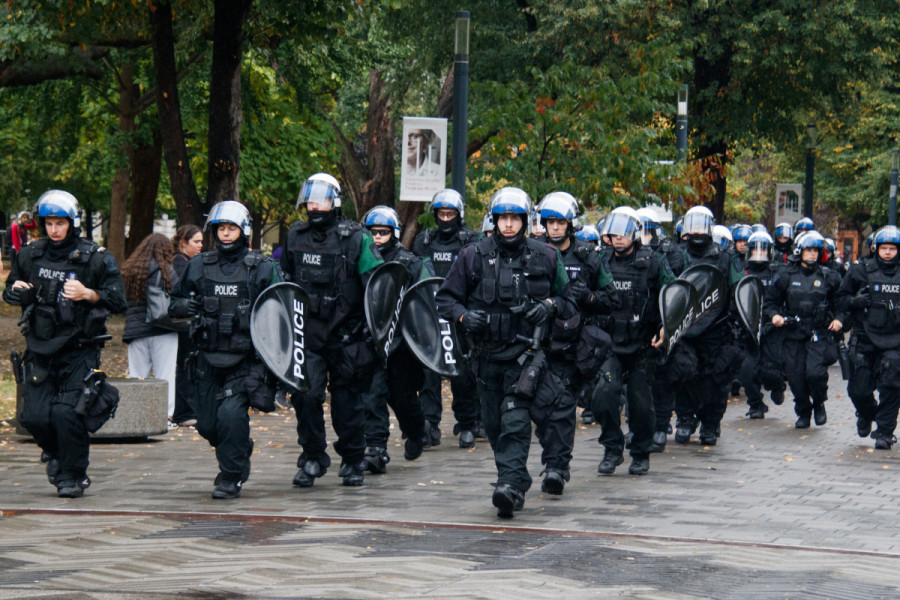 “The SPVM decides where and how to deploy in the city streets,” Fortier said in an email to The Link. “It’s unfortunate, but likely due to criminal acts committed by protestors during past demonstrations that they determined they should be present in the vicinity of campus.”