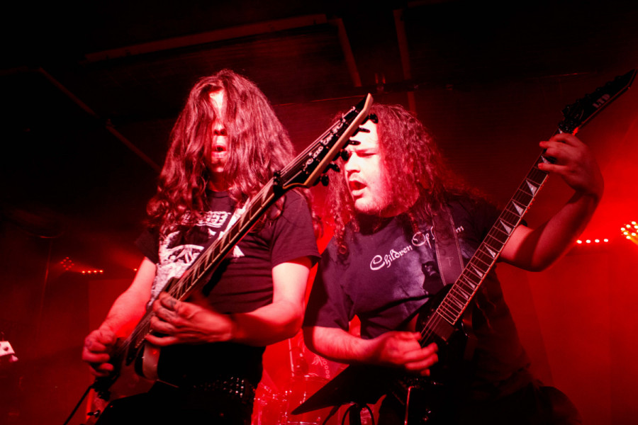 Hatestinger kicked off the evening with a thrash set that didn’t hesitate to get things moving. Having the hard job of warming up the crowd, the trio’s fast, clean riffs quickly took command, backed by precise guitar skills and strong double vocals.