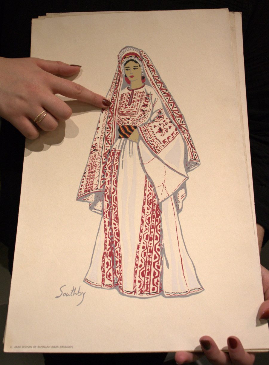 “The inversion of motifs started with the British mandate. They came in and started destroying everything. With this destruction of nature, a lot of the symbols became inverted,” she says. “A lot of times on the same dress, you'll find inverted and upwards [designs], meaning that eventually whatever was destroyed is going.”