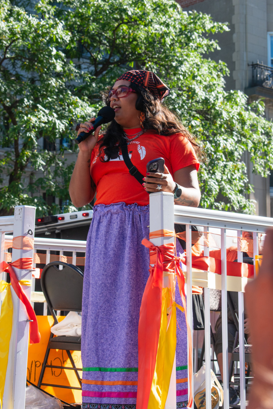 Sevghi, a marcher who was given last name anonymity for safety reasons, was handing out informational pamphlets on the Mohawk Mothers’ fight with McGill University regarding its attempted excavation of unmarked Indigenous graves. It’s a fight that they said is still ongoing.