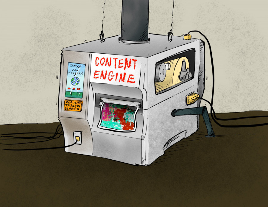 The content, which can be made with little to no human input at lightning speed, is not meant to comment on the severity of the situation or push for change and accountability. Instead, it detaches from reality, further desensitizing audiences to the violence behind it.