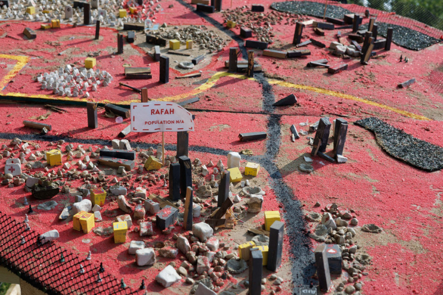 The event’s main focus was a 3D recreation of the Gaza Strip showing damage over the past two years