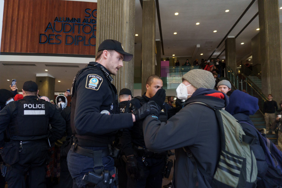 Police were present on De Maisonneuve Blvd. W. at around 12:00 p.m., according to SPVM spokesperson Johany Charland. Spokesperson Manuel Couture also confirmed the presence of police from the Poste de quartier police station as well as anti-riot police.