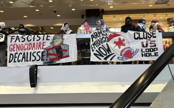 Dozens gathered at the Complexe Desjardins on Jan. 30 in response to Foreign Affairs Minister Anita Anand’s arrival in Montreal. Protesters called for the passing of Bill C-233 to disable shipping weapons and components to Israel through U.S. loopholes.
